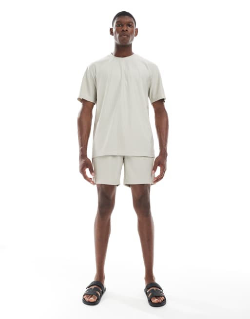 ONLY & SONS plisse relaxed t-shirt & shorts set in beige
