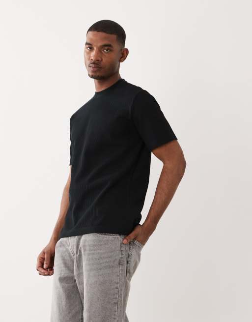 ONLY & SONS relaxed fit waffle t-shirt in black