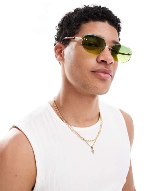 ONLY & SONS retro rimless sunglasses in green with tortoise