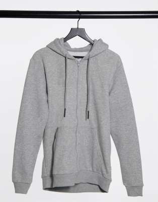 Only & Sons zip through hoodie in light grey