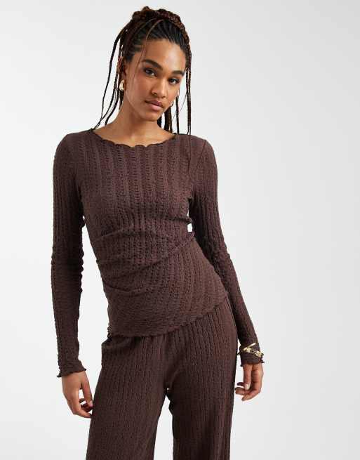 ONLY Tall long sleeve top with ruche detail in chocolate (Part of a set)