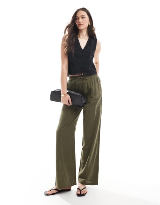 ONLY Tall wide leg linen look pants in khaki