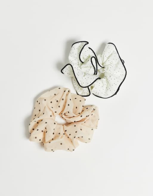 ONLY 2-pack polka dot scrunchies in beige & white