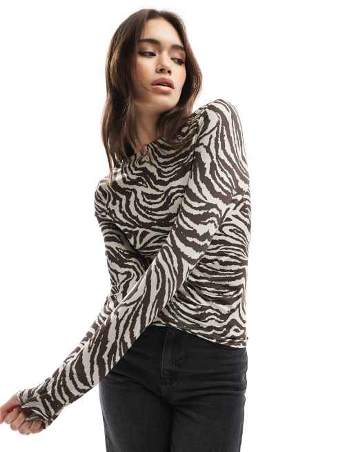 ONLY 2-way long sleeve top in zebra print