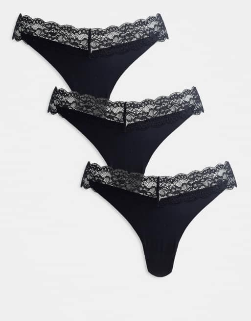 ONLY 3 pack lace trim seamless lingerie thong in black