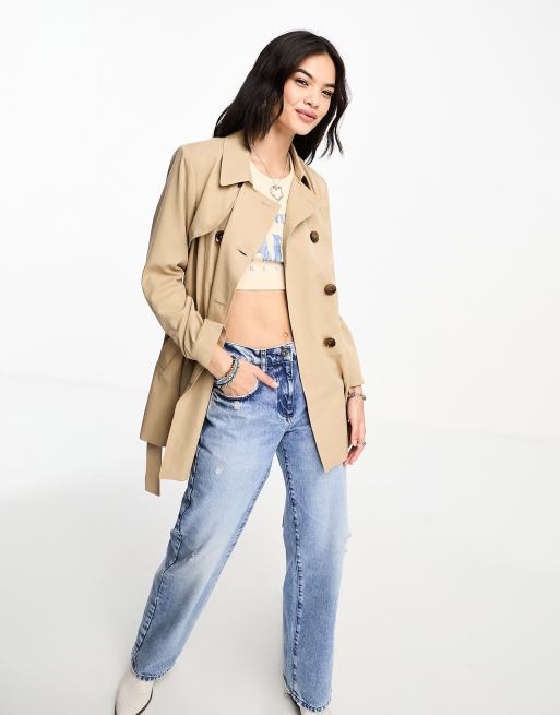 Only button detail short trench coat in beige