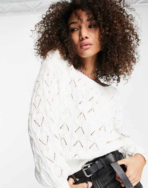 Only crew neck pointelle jumper in white