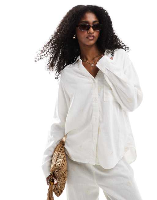 ONLY linen embroidered long sleeve shirt in white (part of a set)