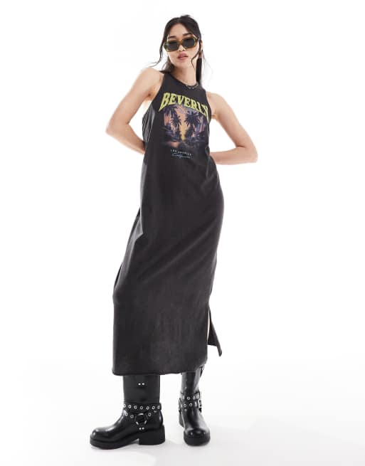ONLY tank maxi dress with Beverly Hills print in washed black