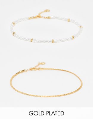 Orelia gold plated snake chain & pearl anklet 2 pack in gold