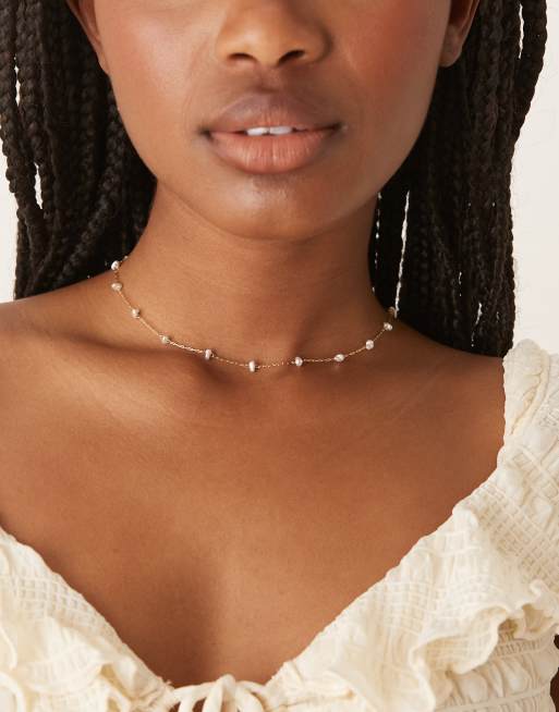Orelia pearl stationed chain necklace in 18k gold plated