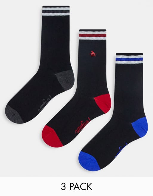 Original Penguin 3 pack colour block socks in black