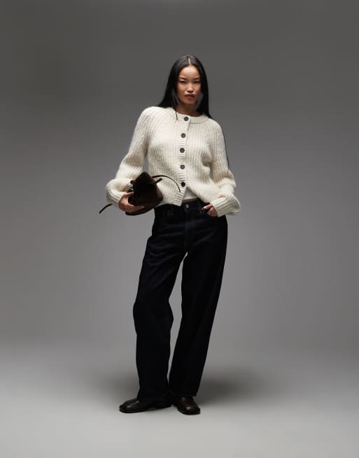 & Other Stories alpaca and wool chunky knit cardigan with balloon sleeves in cream