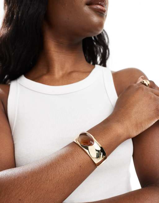 & Other Stories cuff with embedded faux stone in gold