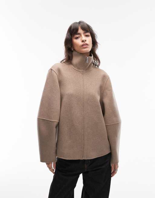 & Other Stories funnel neck knitted bomber jacket in mocha brown