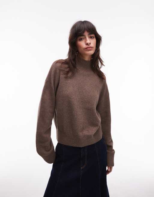 & Other Stories high neck relaxed knitted sweater with wide sleeves in light brown