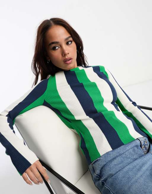 & Other Stories knitted jumper in blue and green stripe