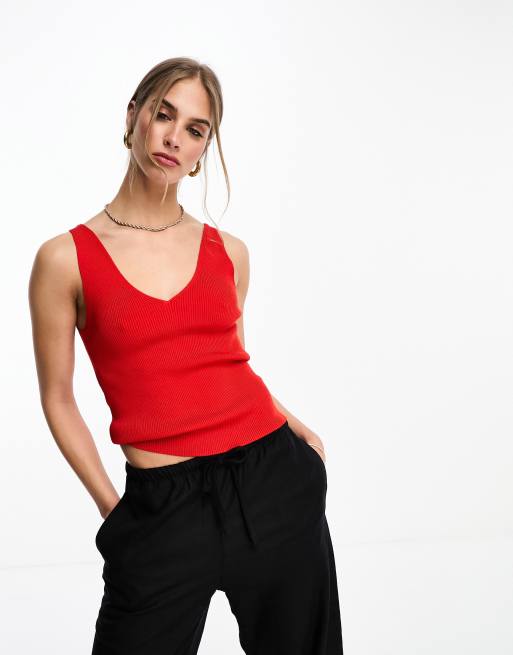 & Other Stories knitted v-neck singlet in red