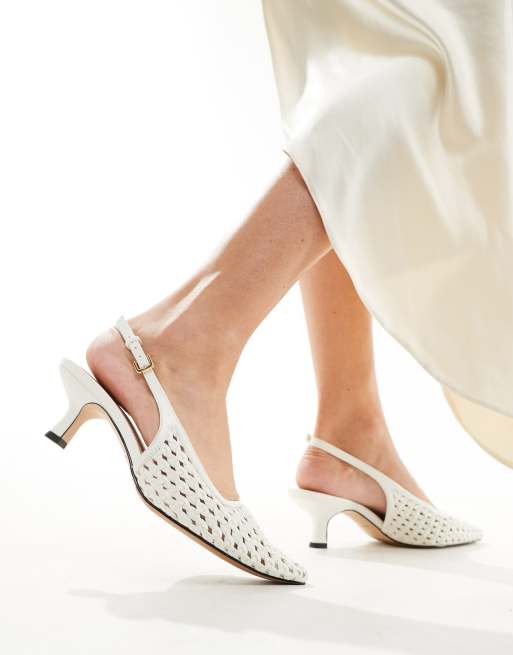 & Other Stories leather braided slingback pointed kitten heels in white