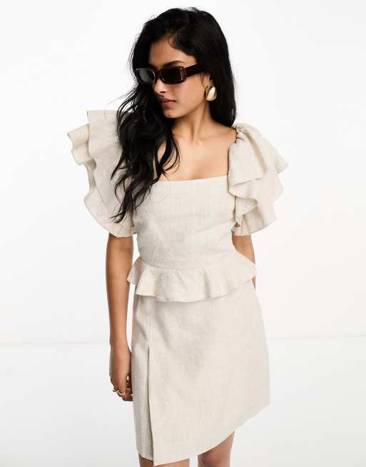 & Other Stories linen frill sleeve top in beige (part of a set)