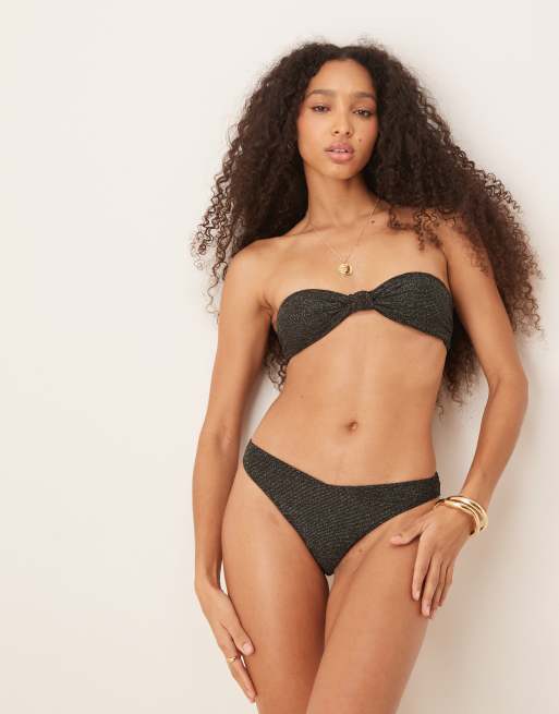 & Other Stories Mix and Match knot front bandeau bikini top with gold glitter thread and removable padding in black