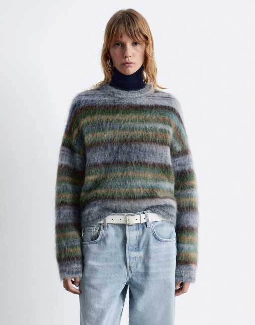 & Other Stories mohair wool hairy knit jumper in multi stripes