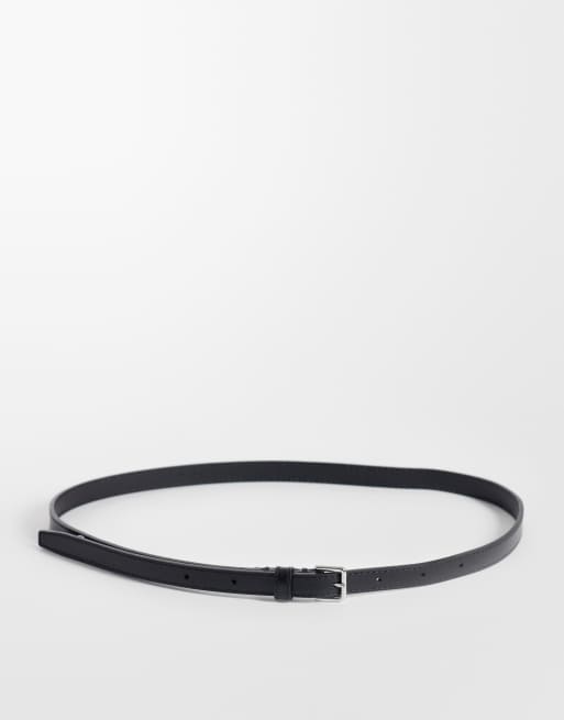 & Other Stories real leather thin square buckle belt in beige