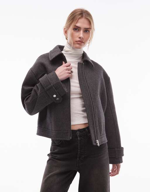 & Other Stories wool rich short twill jacket in dark grey
