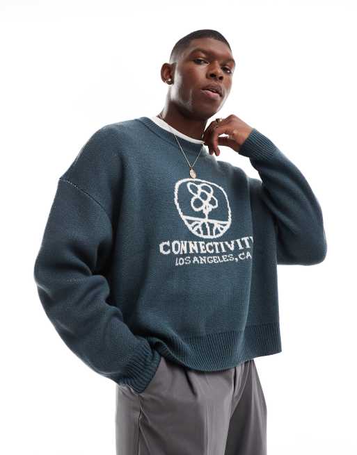Pacsun high neck cropped jumper in dark slate