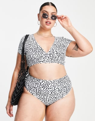 Peek & Beau Curve Exclusive mix and match cross front bikini top in white polka