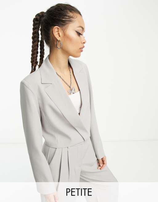 Pieces Petite exclusive cropped blazer in grey (part of a set)