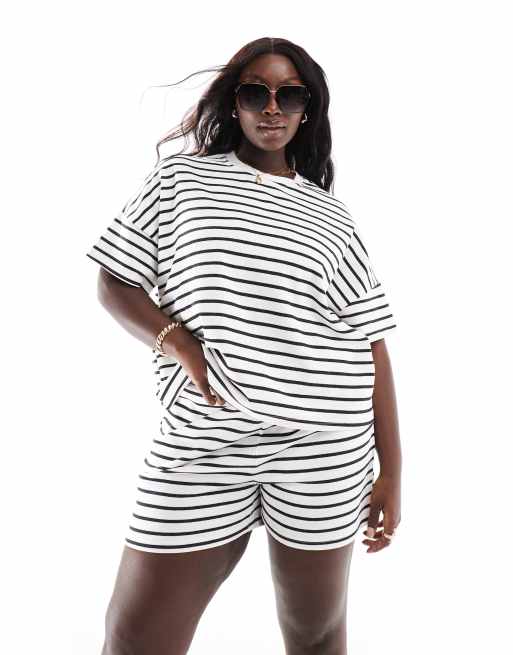 Pieces Curve sweat t-shirt in mono stripe (part of a set)