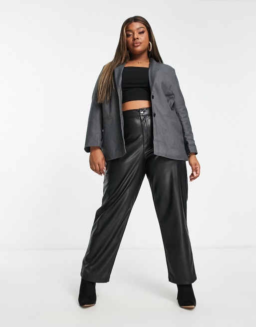 Pieces Curve tailored blazer and cargo mini skirt set in grey