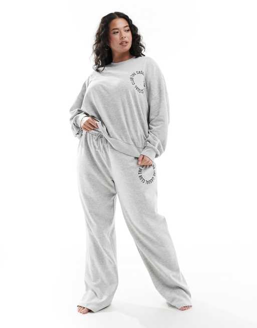 Pieces Curve 'the casual club' slogan wide leg trackies in grey (part of a set)