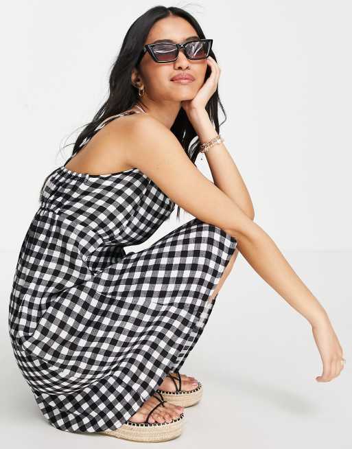 Pieces exclusive mini cami bust detail dress in black gingham