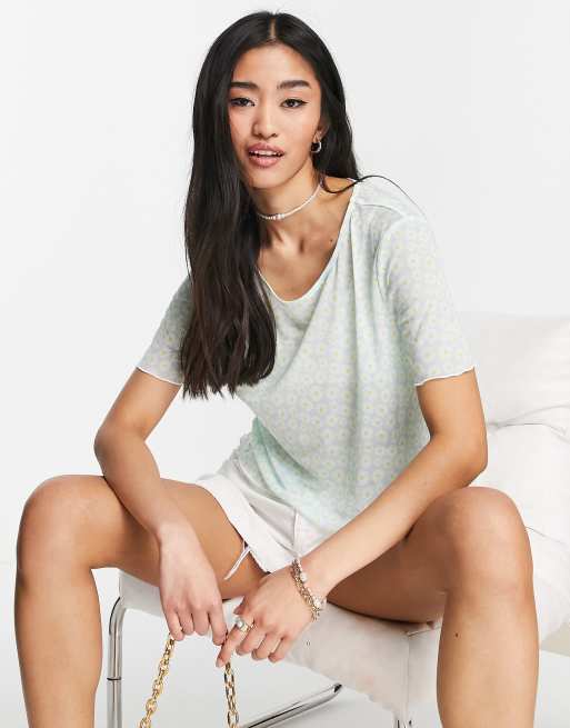 Pieces Gitty short sleeve mesh top in ditsy print