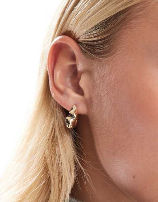Pieces irregular molten hoop earrings in gold tone