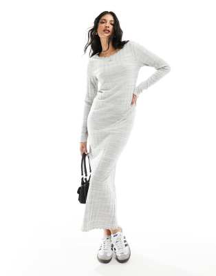 Pieces lettuce edge hem ribbed maxi dress in light grey