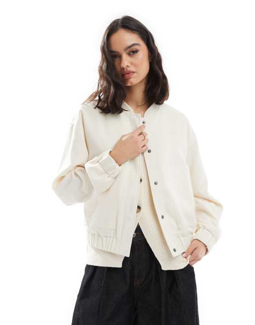 Pieces lined bomber jacket in whisper white