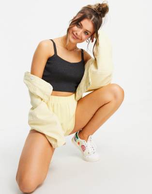 Pieces Marry knitted cropped singlet in dark grey melange