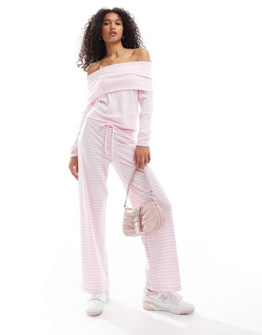 Pieces ribbed jersey pants in pink stripe (part of a set)