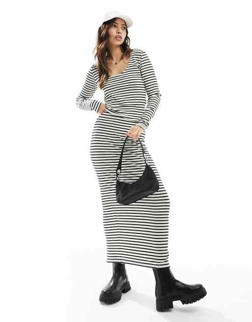 Pieces ribbed maxi skirt in cream and black stripe (part of a set)