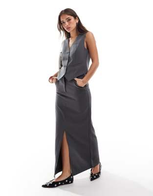 Pieces tailored slit front maxi skirt in magnet grey (part of a set)