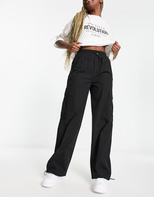 Pieces toggle drawstring cargo pants in black