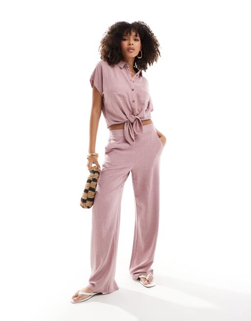 Pieces wide leg linen pants in pink (part of a set)