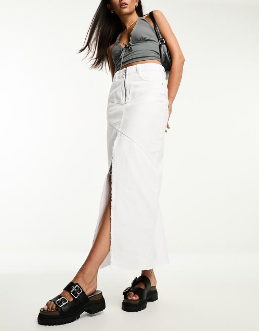 Pimkie asymmetric seam detail maxi denim skirt in white wash