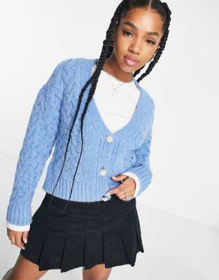 Pimkie cable knit crystal button cardigan in blue