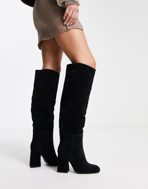 Pimkie faux suede block heel high leg boots in black