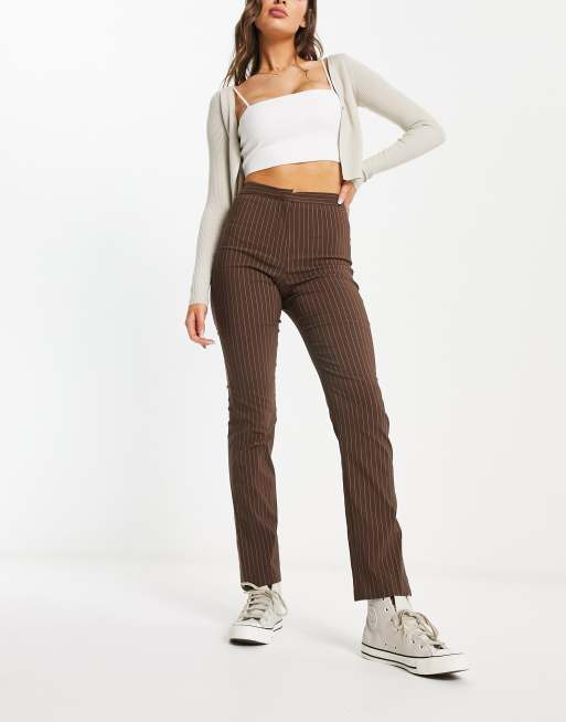 Pimkie high waisted tailored pants in brown pinstripe (part of a set)