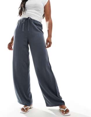 Pimkie linen blend drawstring wide leg pants in grey